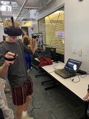 ![]() | They had a Virtual Reality spacewalk simulator. Medium picture [73 KB] Full picture [2941 KB] | ![]() | ||