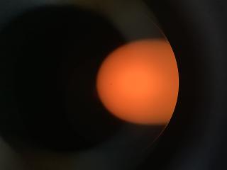 ![]() | The big orange ball is a (slightly distorted) Sun. At 9:00 (left side) is a small black dot. That's Mercury. Medium picture [51 KB] Full picture [2761 KB] | ![]() | ||