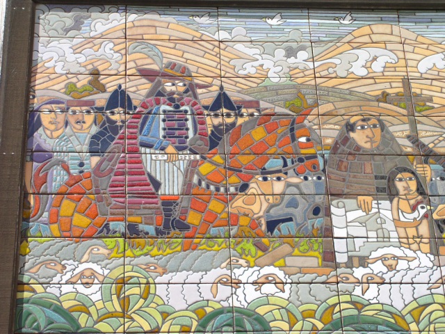 | A mural showing ... stuff. With closeups. Full picture [172 KB] |