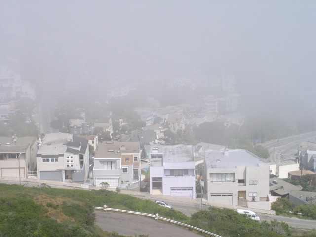 ![]() | A view from the top of Twin Peaks. Unfortunately, it was much too foggy to get a good view. There's a better picture here Full picture [65 KB] | ![]() | ||