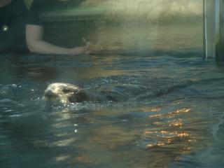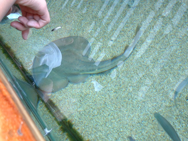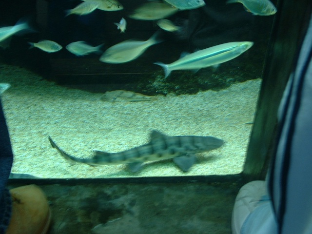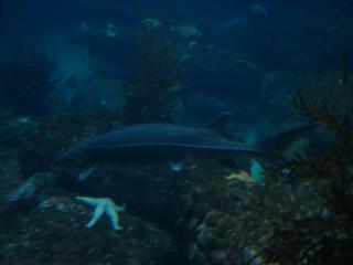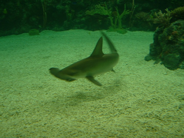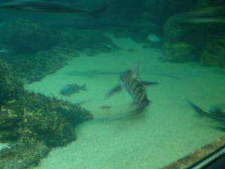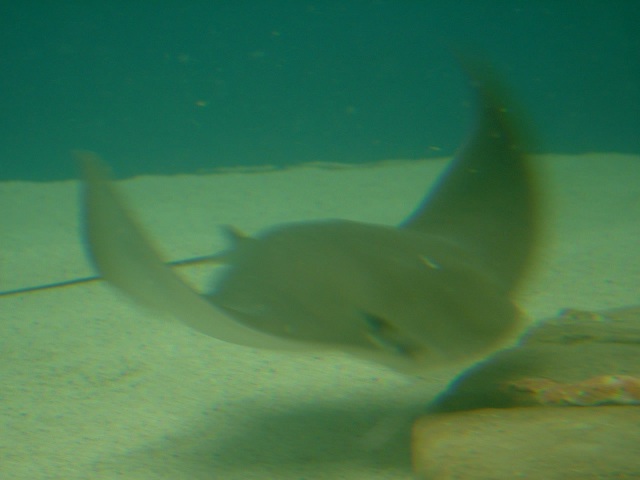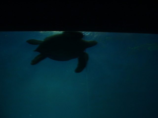 | A turtle swimming in a shark and stingray exhibit Full picture [27 KB] |