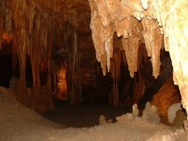 ![]() | The organ is connected to little hammers on formations all over the caverns, and wired to speakers back to the area around the organ. Full picture [61 KB] | ![]() | ||