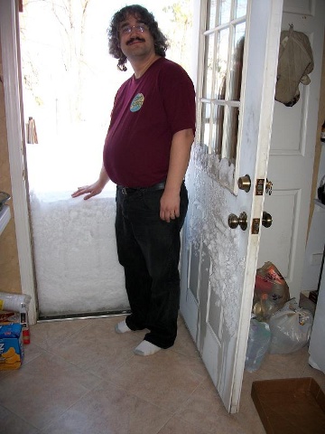 Snow piled up by my back door. I don't have a picture, but there was no snow on my deck Friday 2pm when the storm started.